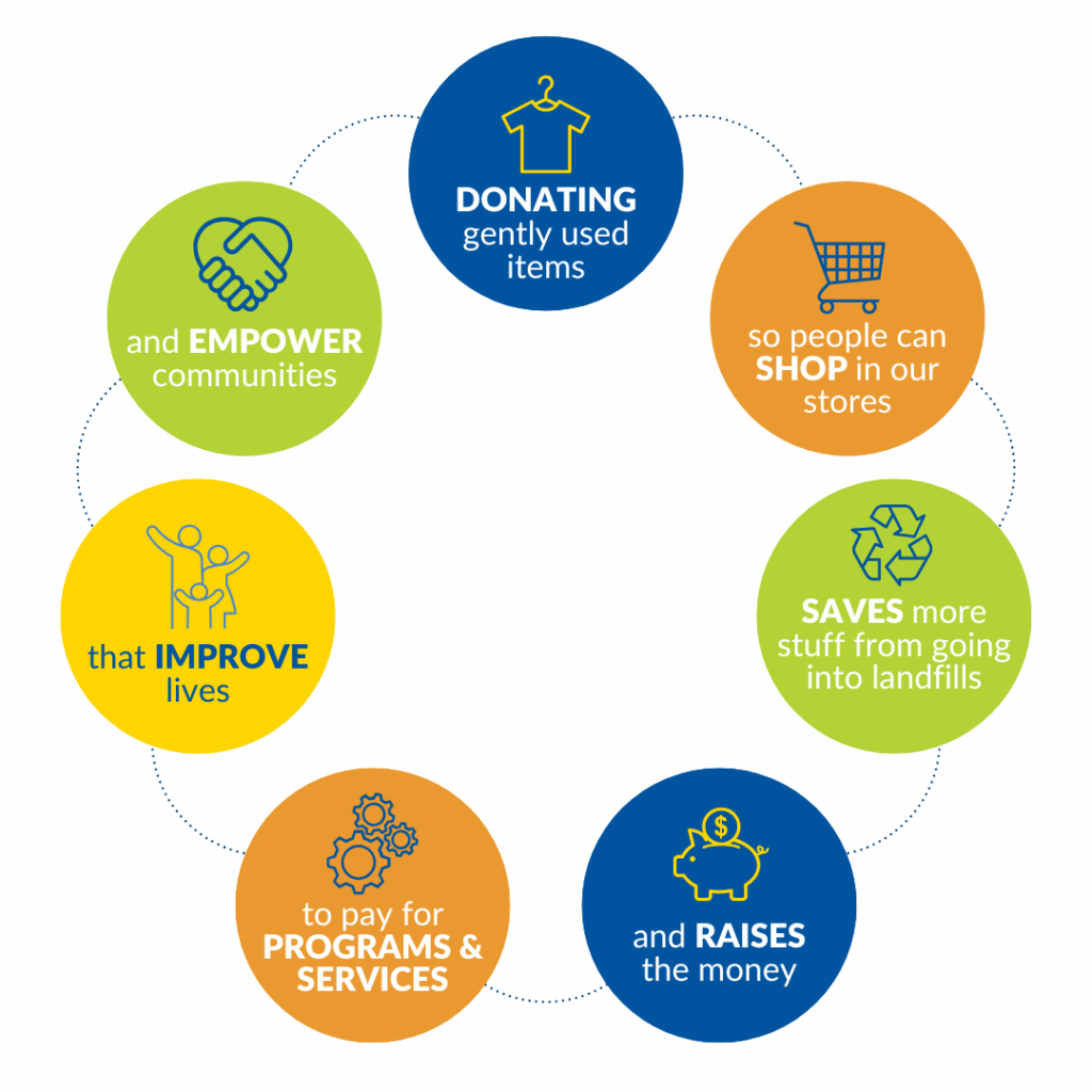 Donations and shopping are the basis for Goodwill’s “Cycle of Success”. These simple things that are beneficial to you are also good for your community and the environment.